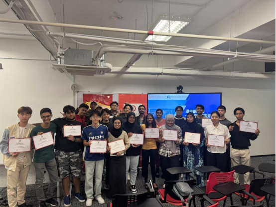 两场培训赢得了在场师生的热烈掌声,同学们纷纷表示,这两场培训不仅让他们对现代通信和汉字图形化有了更深入的了解,也为中马文化教育交流搭建了桥梁。
