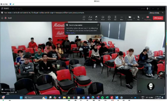 朱珺以《进步的力量——现代通信发展概述》为题,从“追本溯源:通信是做什么的”“速度与激情:1G到5G”“面向未来:我们的明天会怎样”三个方面生动形象地阐释了通信的发展历程。她以深入浅出的方式,将通信的原理、发展历程以及未来趋势娓娓道来,让师生们对中国通信技术有了更深入的了解。并以一首悠扬婉转的《在水一方》为课堂教学增添了一抹亮色,不仅引起了马来西亚师生的兴趣,更巧妙地把通信的作用生动形象地展现了出来。