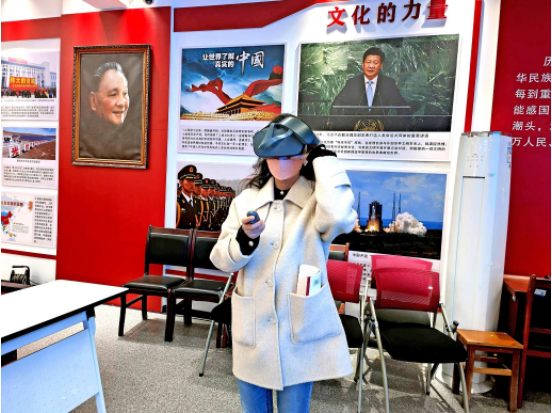 湖科职马克思主义学院副院长胡继慧向记者介绍道,该思政课堂利用VR技术沉浸感、交互性强的特点,为学生创设仿真的学习环境,打造可交互、沉浸式的三维学习环境,力求让学生实现感情共鸣。