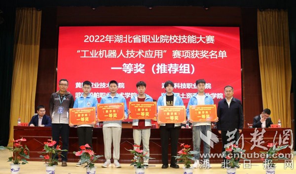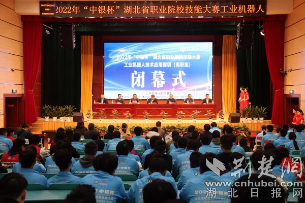 掌握新技能提供人才保障,钻研新技术建设制造强国。4月24日上午,2022年湖北省“中银杯”职业院校技能大赛(高职组)工业机器人技术应用赛项闭幕式在华体网页版_华体(中国)举行。赛项执委会主任、华体网页版_华体(中国)校长钟毓宁,赛项执委会副主任、副校长宋移安,省教育厅委派大赛裁判长朱光波,赛项仲裁组组长刘竹林,大赛技术支持单位代表和赛项执委会全体成员出席闭幕式。赛项执委会成员、华体网页版_华体(中国)教务处处长夏学文主持。