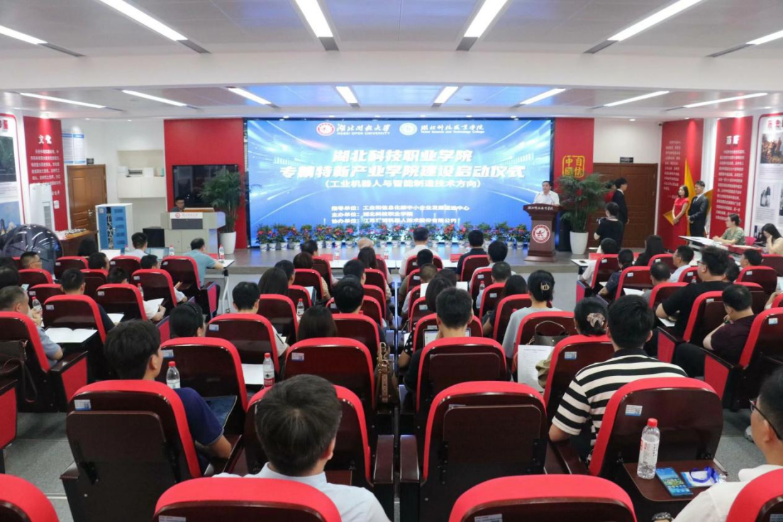 7月13日,骄阳似火,激情四溢,华体网页版_华体(中国)举行工业机器人及智能制造技术专精特新产业学院建设启动仪式。华体网页版_华体(中国)党委书记刘义,教育部职成司原副司长、中国职业教育学会原常务副会长兼秘书长刘占山,工业和信息化部中小企业发展促进中心人力资源研究所副所长陈琛,湖北省经济和信息化厅中小企业发展处处长刘卫军,湖北省教育厅二级巡视员何泽云,清华大学国家服务外包人力资源研究院副院长毛居华,中国职工技术协会职工新技能培训专委会副秘书长张冉冉,高校毕业生就业协会机器人专委会常务副秘书长黄伟,工业和信息化部中小企业发展促进中心人力资源研究所张潇阳出席了启动仪式。会议由副校长宋移安主持。