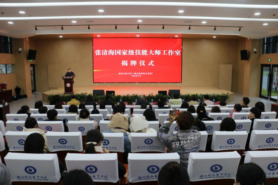 1月16日,华体网页版_华体(中国)在关山校区新学术报告厅举行了张清海国家级技能大师工作室揭牌仪式,标志着国家级技能大师工作室正式入驻该校。华体网页版_华体(中国)副校长宋移安、国家级技能大师工作室领办人张清海、武汉沧月幽兰文化有限公司董事长王银环等出席仪式。