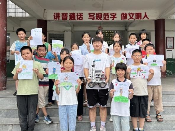 在工业机器人课上,团队成员利用专业性知识和技能,精心打造“智能机器人走进乡村”七彩课堂,为小朋友们讲解机器人原理及零部件构造,带领小朋友们开展实训,给小朋友们带来了不一样的假期体验。在实际操作机器人之余,小朋友们在老师的引导下纷纷拿起画笔,描绘出“我心目中的机器人”,让孩子们感受到科技的魅力,激发他们的科学思维,培养科学意识,提高科技素养。