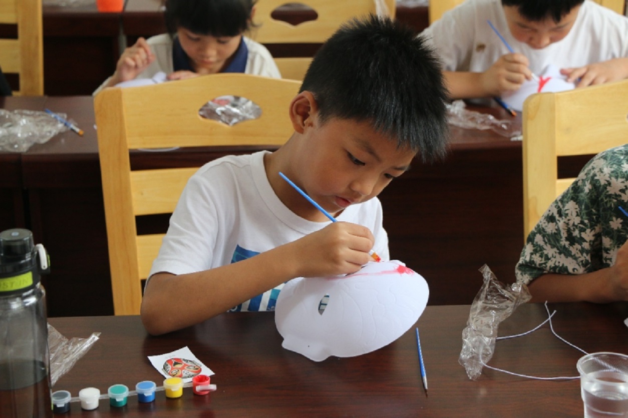 (图为小朋友绘画脸谱)