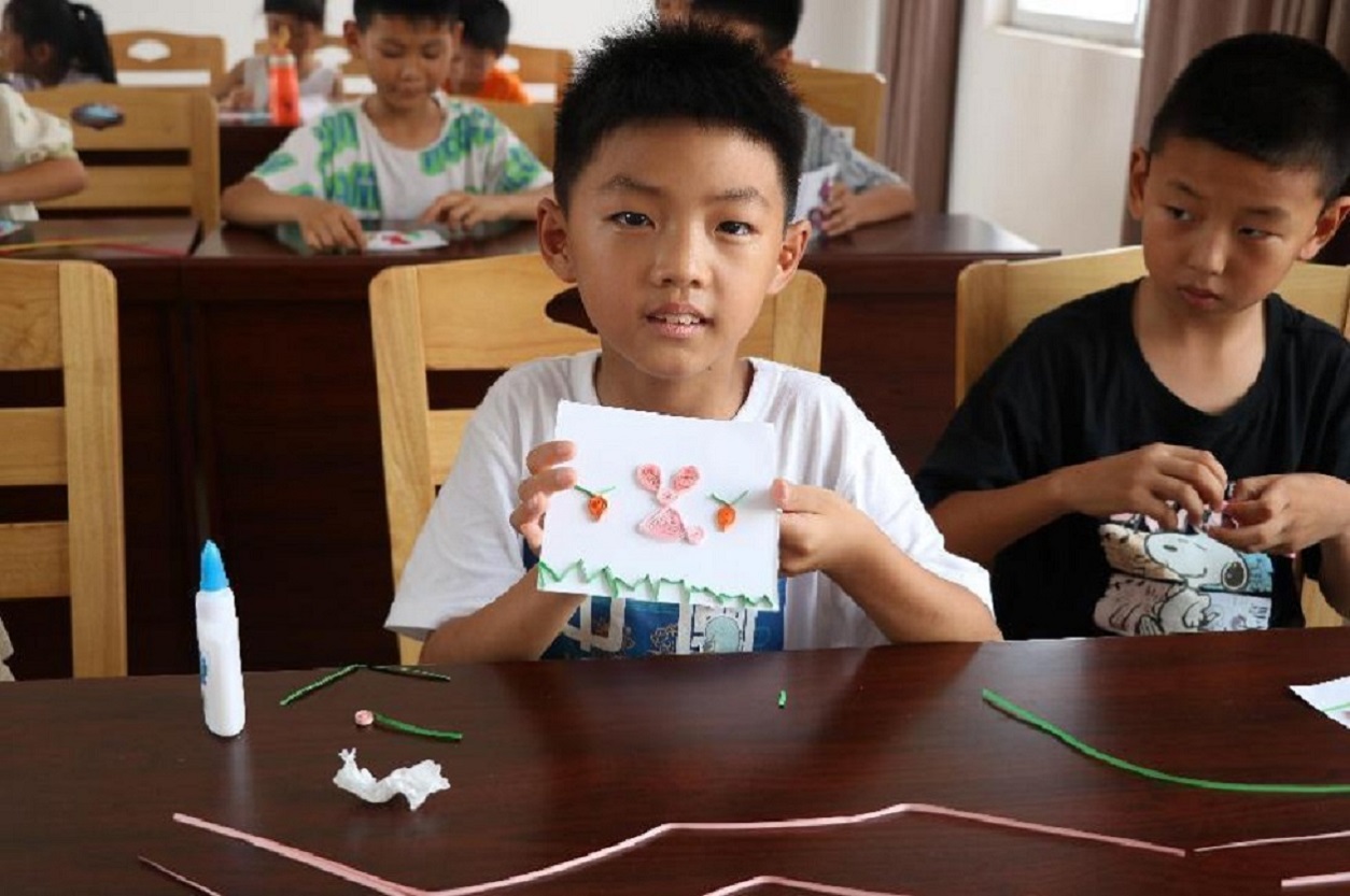 衍纸艺术,妙趣横生。7月6日,头雁实践队开展衍纸课堂,团队成员从衍纸文化、衍纸布局、操作步骤等方面进行教学,鼓励小朋友们发挥想象力,尝试不同的颜色和形状,制作出不同动植物,让每一个作品都充满个性和创意。整个教学过程充满了温馨与互动,让小朋友们感受到了学习的乐趣与成就感。