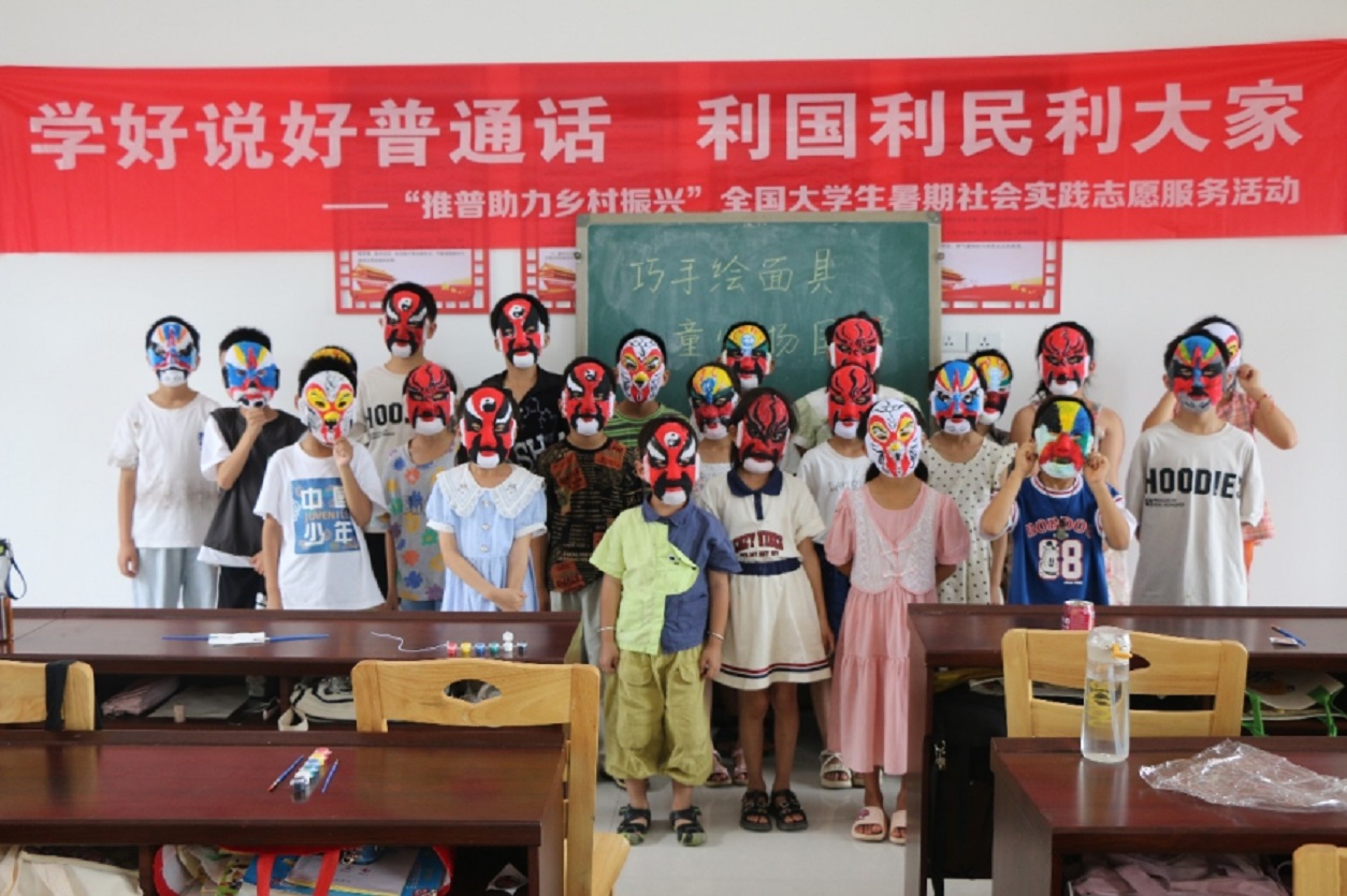 (图为头雁实践队成员帮助小朋友绘画脸谱)