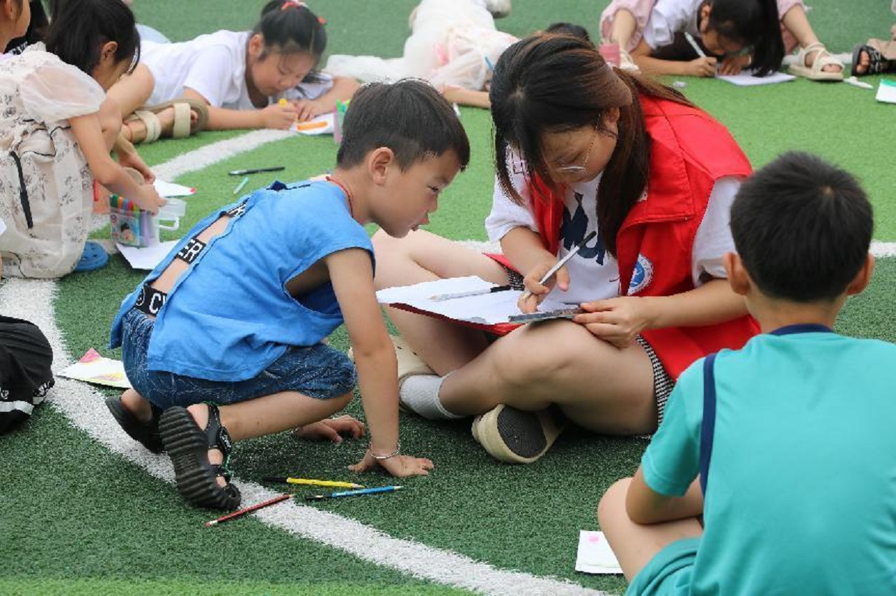 (图为头雁实践队成员帮助小朋友绘画)