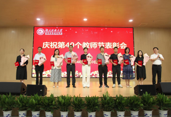 与会校领导为受到表彰的先进个人颁发荣誉证书,送上鲜花和祝福。
