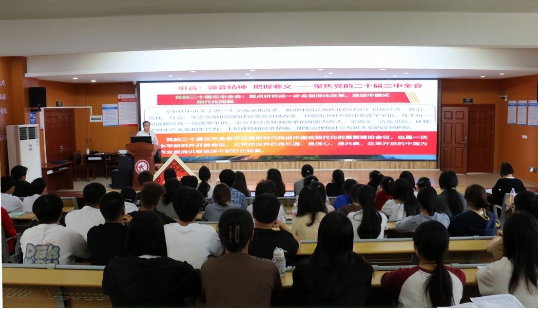 为深入学习贯彻党的二十届三中全会精神,着力用党的创新理论武装思想、凝聚力量,引领广大青年学生自觉把思想和行动统一到党中央决策部署上来。10月12日上午,华体网页版_华体(中国)党委书记钟毓宁教授以《加快发展新质生产力》为主题,在思政讲堂为人工智能学院2024级计算机专业学生讲授了一堂生动且精彩的主题思政课。