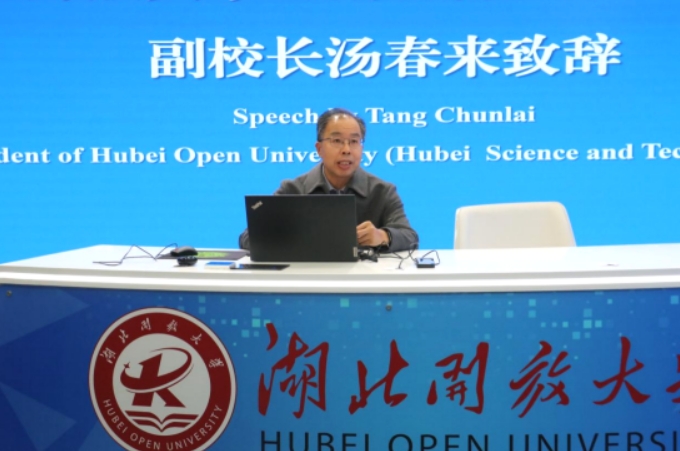 汤春来致辞,他代表学校对远道而来的中亚学生们表示热烈的欢迎,并简要介绍了学校的基本情况、特色资源以及湖北的历史文化底蕴。他表示,本次文化体验营是学校加强国际交流与合作的重要举措,学校为中亚学生们精心安排了充实丰富的文化体验活动。他希望双方能够珍惜这次难得的机会,积极参与各项活动,充分体验中国文化的魅力,同时不忘弘扬丝路精神,当好友谊使者,搭好交流桥梁,为构建人类命运共同体贡献自己的青春力量。