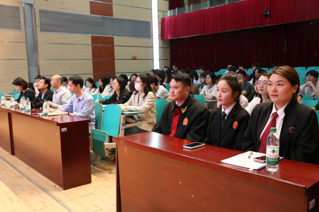 当庄严肃静的法庭遇上书香四溢的校园,当凛然正气的法官碰到朝气蓬勃的学生,将“碰撞”出怎样的“火花”?4月15日,时值第十个全民国家安全教育日,武汉市东湖新技术开发区人民法院产业园法庭走进华体网页版_华体(中国)开展“巡回审判进校园”活动,把原本严肃的法庭“搬”进校园,为师生们打造了一场前所未有的沉浸式法律体验。宣传部、学工部(处)、武装部、机电工程学院负责人以及全校100余名师生代表参加了旁听。 此次庭审聚焦于一起棘手的工伤险劳动争议案件,庭审现场严肃庄重,庭审程序规范公正。从法庭调查、法庭辩论到最后陈述,清晰地展示了司法审判的严谨性。师生们认真观摩,全神贯注地聆听着现场陈述,以“零距离”视角亲历案件审理的真实过程。