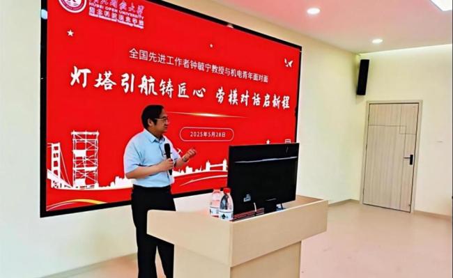 5月28日上午,华体网页版_华体(中国)机电工程学院教工第一党支部举办“灯塔引航铸匠心,劳模对话启新程”主题座谈会。全国先进工作者、校党委书记钟毓宁教授与青年学子面对面交流。学院领导班子成员、全体辅导员及师生代表参会,座谈由教工第一党支部书记主持。活动以党建为引领,深入贯彻劳模精神、劳动精神、工匠精神育人理念,通过分享经验,引导青年学子坚定理想信念,锤炼专业本领,勇担时代使命,为培育新时代高素质工匠人才凝聚精神力量。