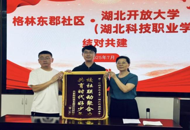 “老师和志愿者们,这面锦旗请收下!”在武汉市格林东郡社区暑期托管班的结课仪式上,社区党委书记熊金莲和家长代表捧着一面绣着“校社联动聚合力共育时代好少年”的红绸锦旗,郑重地递到志愿者手中。
