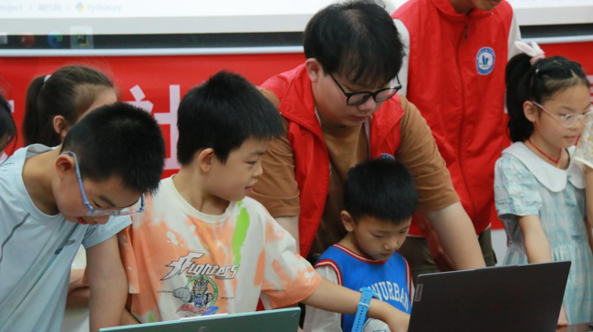 编程课堂:用代码点亮童年的“未来感”。作为人工智能学院的特色课程,少儿编程课被孩子们称为“最酷的课”。志愿者们结合专业所学,将编程与生活场景结合——从用Scratch设计“垃圾分类小卫士”互动游戏,到用Python编写“防溺水预警小装置”模拟程序,每节课都充满惊喜。“小朋友们刚开始连循环语句都搞不懂,现在有的小朋友已经能独立调试代码了!”志愿者张梓熙说,“更重要的是,孩子们学会了用计算思维解决问题——比如设计防溺水预警时,他们会思考哪些情况会触发警报、如何设置安全距离,这比单纯学代码更有意义。”