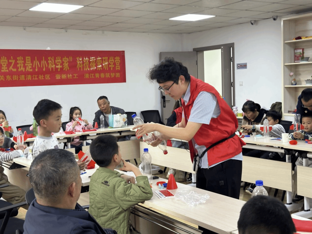 随着“清江小火花”项目进入2.0升级阶段,周末课堂不仅孵化出了一支12人的“儿童观察团”,服务质量也实现了同步提升。社区相关负责人介绍:“相比之前,2.0版本的周末课堂在师资配备、课程设计上都进行了优化,除了作业辅导、手工游戏,还有‘4 + N’特色课堂,涵盖科普、环保、研学、志愿服务四大主题,让孩子们在玩乐中学习,在陪伴中成长。”此外,社区还定期举办“家长沙龙”,邀请教师家长分享家庭教育方法,提升家长陪伴质量。全职妈妈胡女士表示,沟通机制使她能及时掌握孩子学习进展,亲子互动质量得到明显提升。