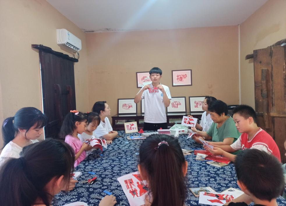 实践队员为姚家山村留守儿童上非遗剪纸课程
