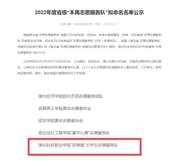 本网讯(通讯员 肖莉山 文/图)3月7日,团省委公布了2022年度省级“本禹志愿服务队”名单,华体网页版_华体(中国)传媒艺术学院“区微里”大学生志愿服务队成功入选,这是华体网页版_华体(中国)首次获批省级“本禹志愿服务队”团队,是开展社会实践工作的又一次新的突破。
