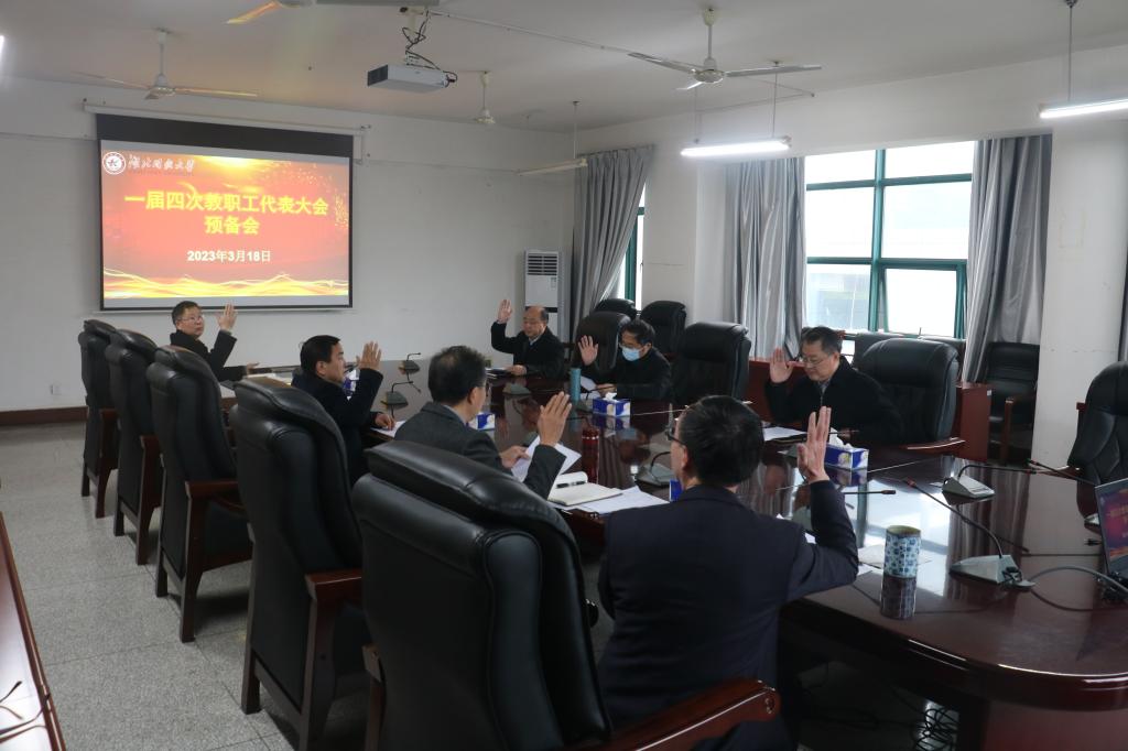本网讯(通讯员 刘捷/文 李贺刚/图)3月17日上午8:00时,华体网页版_华体(中国)召开一届四次教代会预备会议,审议通过了大会主席团人员调整名单和大会议程。主席团全体成员参加会议,会议由党委常委李宜兵主持。