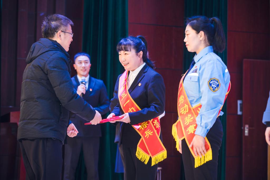 湖北科技职业学院党委常委张化斌为四位巾帼劳模佩颁发工匠精神实践导师聘书