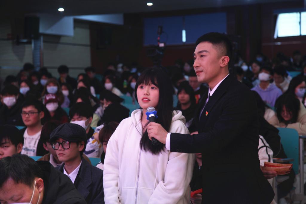 “地下动脉”十九载,青春相伴“梅花红”,来自武汉地铁运营有限公司的客运二中心2号线汉口火车站中心站长,党的二十大代表,全国劳动模范姚婕,为学生讲述了她从19年前初入职场对枯燥工作充满抱怨,到以身边人为榜样积极进取,刻苦钻研业务,创新工作方法,做好地铁服务工作,最终从一名普通的站务员成长为汉口火车站的中心站长,荣获全国劳动模范荣誉,光荣的当选党的二十大代表的人生历程。正如她亲身经历的武汉轨道交通的发展一样,从当年只有一条1号线,到现在的11条线,由26座车站增长到291座车站,每一步的发展和成长都不是一蹴而就,只有努力,坚守,创新,突破,才能找到成功的路。