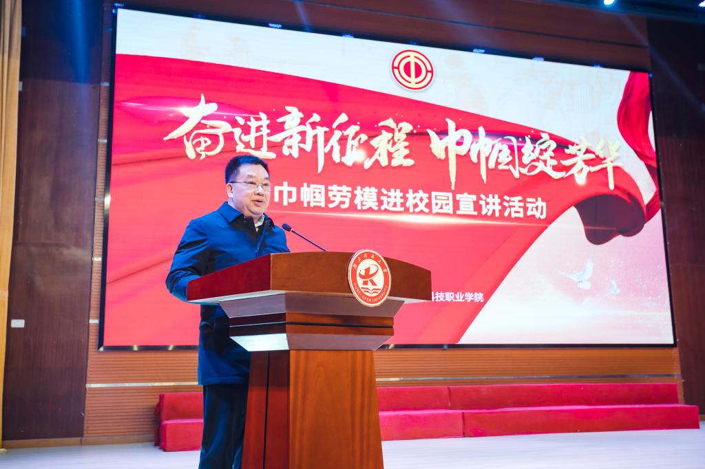 宣讲会上,湖北科技职业学院校领导张化斌为四位巾帼劳模佩戴绶带以及颁发工匠精神实践导师聘书。现场还进行了《奋进新征程 巾帼绽芳华》文艺汇演。整场宣讲活动既弘扬了劳模精神、劳动精神、工匠精神,又展现了当代大学生朝气蓬勃的生机,让青春在全面建设社会主义现代化国家的征程上绽放绚丽之花。