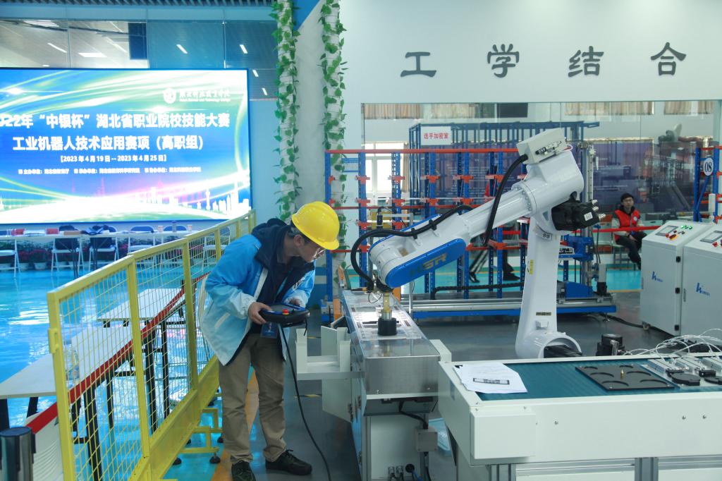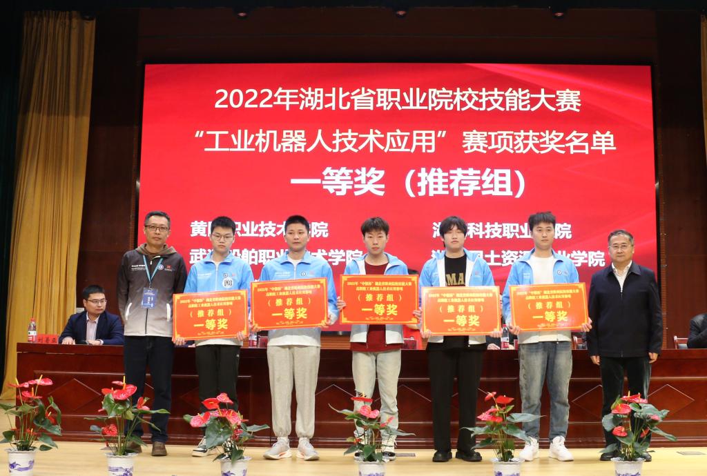 本网讯(通讯员 宋晓露 农珑/文 刘捷/图)4月24日上午,2022年湖北省“中银杯”职业院校技能大赛(高职组)工业机器人技术应用赛项闭幕式在华体网页版_华体(中国)学术报告厅举行。赛项执委会主任、校长钟毓宁,赛项执委会副主任、副校长宋移安,省教育厅委派大赛裁判长朱光波,赛项仲裁组组长刘竹林,大赛技术支持单位代表和赛项执委会全体成员出席闭幕式。赛项执委会成员、职院教务处处长夏学文主持。