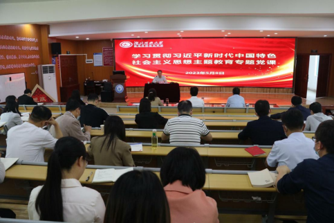 本网讯(通讯员 肖凌瑶/文 李贺刚/图)5月8日下午,党委书记刘义以“领导干部要带头做到‘两个维护’”为题,在思政大讲堂讲授专题党课,省委第十四巡回指导组组长王兆民等莅临指导,全体中层领导干部、党支部书记、教师代表100余人参加了学习。