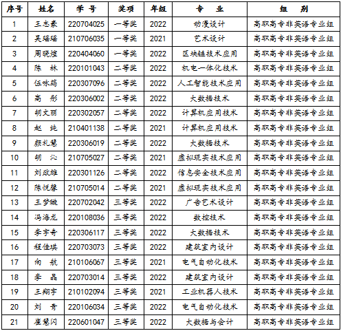 马克思主义学院、公共课教学部对本次大赛高度重视,精心组织公共课教研室“职场通用英语”教学团队做好学生报名、分组指导等工作,老师们认真探讨词汇教学方法,依托学习通平台、词达人英语词汇智慧学习系统等信息化学习软件,利用课余时间对报名学生开展线上+线下的赛前辅导,从4月6日起先后进行了模拟赛、校赛和省赛。本届大赛校赛共有493人参加,完成率85.8%,校赛前50名进入省赛,与全省464名选手PK。省赛采取线下监考、线上闭卷比赛的形式竞速竞技,经过激烈的角逐,最终有21名同学获省赛奖项,其中3名同学将于5月27日代表湖北省参加全国总决赛。