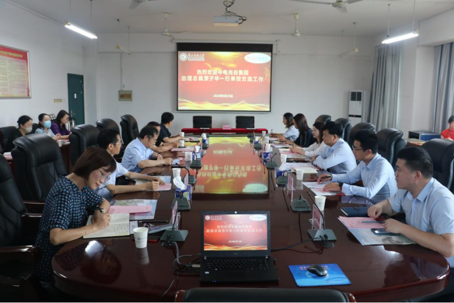 贾子华介绍了中电光谷产业的总体情况以及主要业务项目,并提出期待学校园区双方开辟多渠道合作,共同建立产学研科技合作平台,提供就业服务,在项目实施及成果创新中深度合作,加强产教融合,促进校企共同发展。