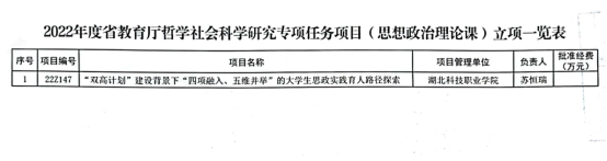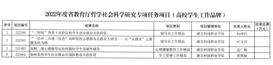 本网讯(通讯员 王维 文/图)近日,从湖北省教育厅获悉,在2022年湖北省教育厅哲学社会科学研究专项任务项目中,华体网页版_华体(中国)获批立项4项高校学生工作品牌项目和1项思想政治理论课项目。其中学生工作品牌项目立项数量为历年最高。