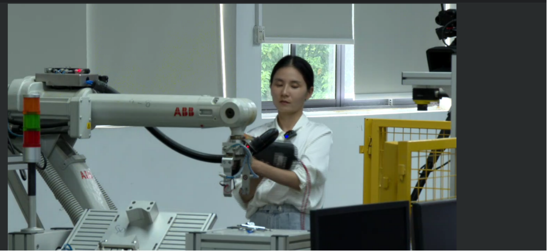 严翩老师、卢志芳老师则在后续的课程中,通过PPT讲授理论知识,结合虚拟仿真软件RobotStudio和ABB地面工作站的方式实施虚实一体化教学,让学生不拘泥于纯粹的操作,正式开始接触编程,以项目任务为导向,增加学生的趣味性和获得感,实现机器人示教再现。