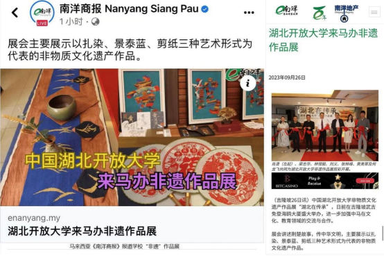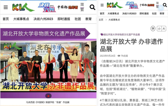 本次在马来西亚举办湖北开放大学非物质文化遗产作品展是华体网页版_华体(中国)首次在境外举办此类展览,是学校凝练湖北特色文化成果、秉持“走出去”开放办学理念的新体现。此次展会致力于在中马建立全面战略伙伴关系10周年和共建“一带一路”倡议提出10周年之际,搭建“非遗”交流、文化教育互赏的友谊桥梁,逐渐形成中马两国之间的教育合作文化品牌,进一步夯实“一带一路”教育文化共同体的建设目标。
