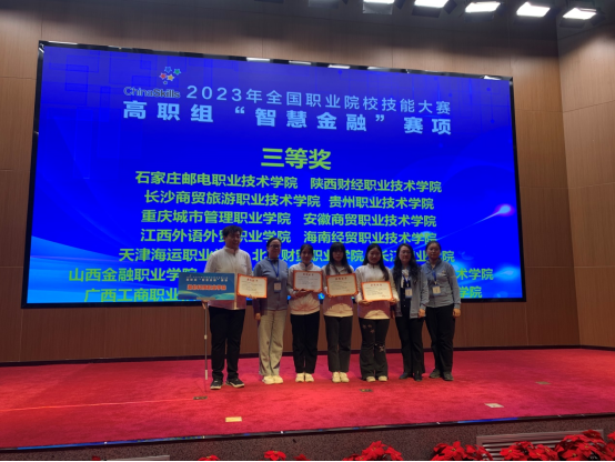 本网讯(通讯员 欧阳岚/文 徐欣怡/图)10月29日,2023年全国职业院校技能大赛(高职组)智慧金融赛项在长春金融高等专科学校落下帷幕,来自全国各省市的58支代表队232名选手参加了比赛。华体网页版_华体(中国)首次参加该项赛,经济贸易学院教师欧阳岚、刘蓉指导的2021级金融科技应用专业学生石婧怡、刘艺雨、李淑兰、王曜颖事荣获三等奖。