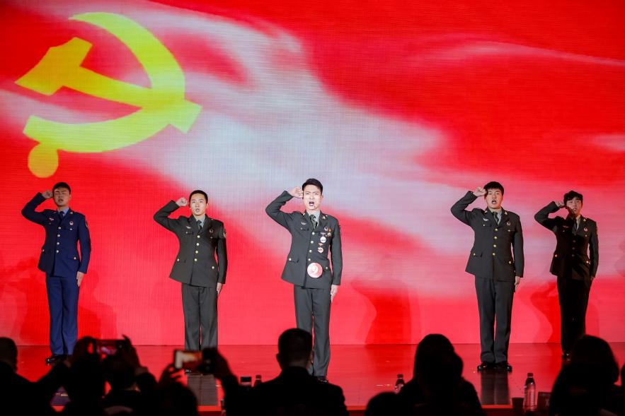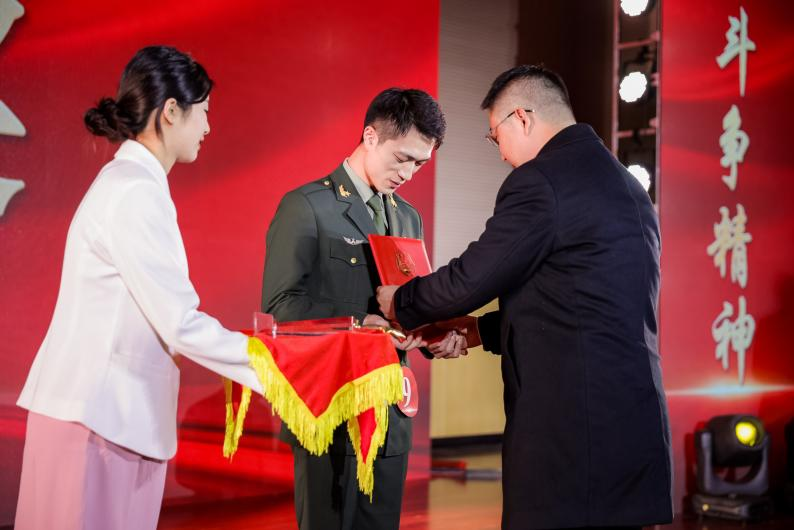 比赛现场,王磊同学以“从军行”为主题,讲述了他从学校应征入伍,服役于驻香港部队某特种作战营的奋斗故事,字字真情,掷地铿锵,展现出了中国军人的飒爽英姿。服役期间,他所在单位被习近平总书记授予“香港驻军模范特战连”荣誉称号。如今戎装虽褪,但报国心不泯。他的一句“我始终记得退役仪式时在军旗下庄严的承诺:若有战,召必回!”博得了现场如雷般的掌声。展示环节中,当舞台上的集结号响起时,华体网页版_华体(中国)五名来自不同兵种的退役士兵代表在舞台上迅速集合,他们的庄严宣誓,演绎出新时代青年一朝从军报国,一生坚守本色的决心,再次感动全场。