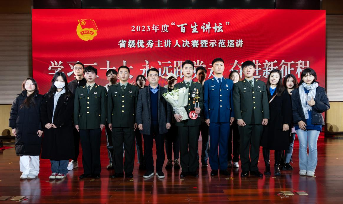 2023年5月,团省委、省学联下发了关于在全省高校团学组织中持续深化“百生讲坛”学习宣传贯彻习近平新时代中国特色社会主义思想活动的通知。校团委积极响应、精心组织,经班—院—校层层遴选推荐,经济贸易学院的王磊同学从各级赛事中脱颖而出,并以分赛区第一名的好成绩入围了省级决赛暨示范巡讲活动。备赛过程中,经贸学院领导老师反复打磨文稿,进入决赛后共同精心制作背景视频,排练情景展示环节,力求达到最佳表现效果,在省级舞台上展现湖科学子风采。
