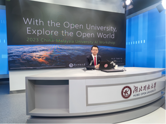 本网讯(通讯员 沈文捷 高杨舒 文/图)12月13日,华体网页版_华体(中国)海外学习(培训)中心向马来西亚计算机科学与工程大学的师生开展了“中马人工智能交融大课堂”培训。学校软件工程学院田野博士在湖北开放大学全景演播室对来自马来西亚的师生进行了授课与研讨。学校外事处、马来西亚计算机科学与工程大学师生参与了学习与观摩。