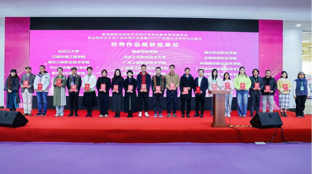 本网讯(通讯员 严可祎/文 孙瑜/图)12月24日至26日,由教育部职业院校艺术设计类专业教学指导委员会主办的“全国职业院校艺术设计类优秀作品展暨2023年校企融合成果转化对接会”在广州琶洲·灵感创新展馆举行。本次展会参展院校及企业200余家,展出作品数量超过5000个,传媒艺术学院带着学生优秀毕业作品参展。