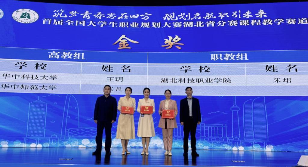 职规赛是教育部2023年谋划启动的以职业规划为主题的全国性就业类赛事。湖北省赛70多所高校报名参加,经过材料评选,12所本科院校和8所高职院校最终进入决赛。决赛分为课程建设情况汇报、互动答辩、教学或指导情景模拟三个环节,华体网页版_华体(中国)授课团队代表朱珺在现场决赛环节中表现出色,赢得了现场评委一致认可。评委们高度评价华体网页版_华体(中国)课程建设的特色和创新点,认为该课程能够紧密结合学校的办学定位和学生的特点,在促进学生职业发展和就业指导方面取得显著成效。