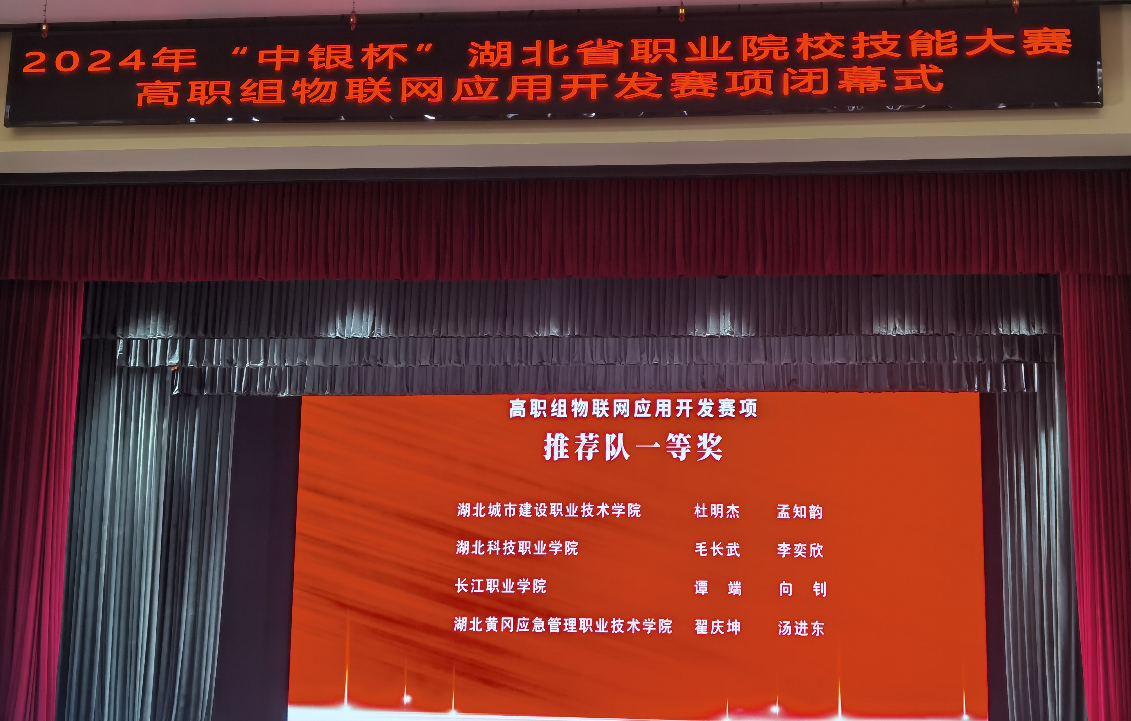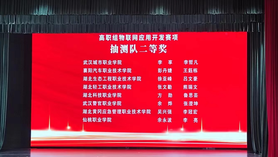 本网讯(通讯员 吴珂/文 鲍毅/图)2024年湖北省职业院校技能大赛高职组物联网应用开发赛项于3月18日至22日顺利举行。华体网页版_华体(中国)物联网应用技术专业2022级学生毛长武、李奕欣组成的推荐队获推荐组一等奖(排名第二),方勋、鲁思芸组成的抽测队获抽测组二等奖(排名第十);物联网应用技术专业教师鲍毅、刘瑞北获教师组三等奖;鲍毅、刘瑞北获优秀指导教师奖。
