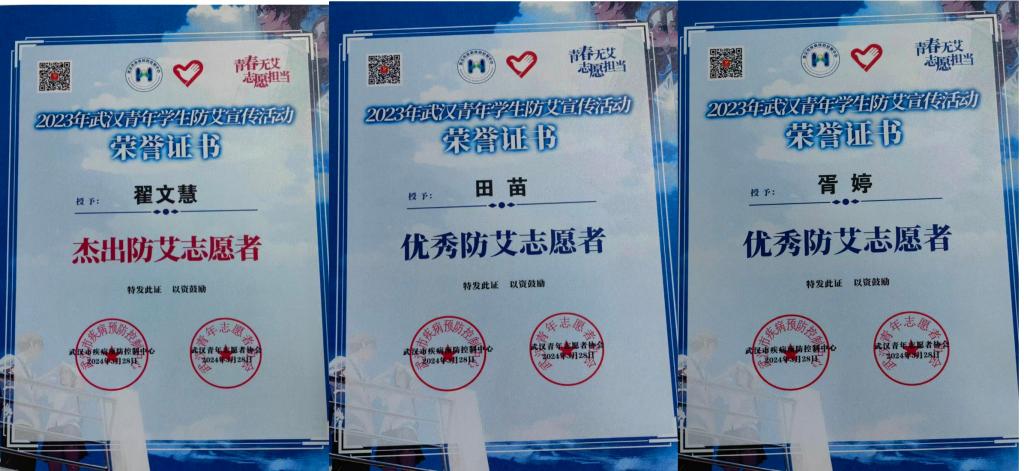 本网讯(通讯员 樊有镇 翟文慧 文/图)3月28日下午,武汉市疾病预防控制中心、武汉青年志愿者协会在武汉人力资源服务产业园召开了2023年武汉青年学生防艾宣传活动总结会,对活动中涌现出的先进集体、先进个人进行通报表扬。华体网页版_华体(中国)青春健康同伴教育社获评武汉市“优秀防艾志愿服务集体”,工商管理学院青协指导老师樊有镇获评武汉市“校园行活动优秀指导老师”,工商管理学院青协会长翟文慧获评武汉市“杰出防艾志愿者”,学院青协会长胥婷和田苗共获评武汉市“优秀防艾志愿者”。
