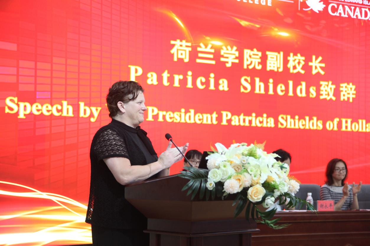 Patricia Shields在致辞中对华体网页版_华体(中国)领导及全体教职工在中加合作办学项目中的辛勤付出致以诚挚的谢意,对同学们从荷兰学院与华体网页版_华体(中国)两所院校同时顺利毕业表示衷心的祝贺,向华体网页版_华体(中国)在与荷兰学院合作办学方面所表现出来的远见卓识和非凡勇气致以敬意。同时,她鼓励毕业生们勇于追寻自己的梦想,热切期待两校在未来建立更紧密、深入的合作关系。