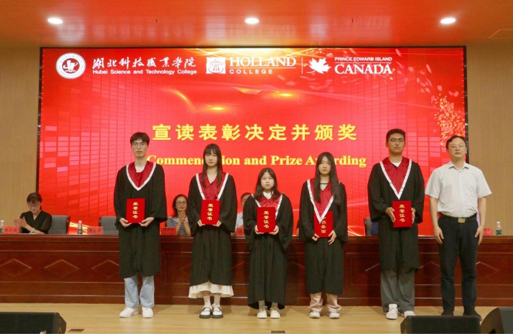 电信工程学院院长涂家海教授宣读表彰决定,他勉励毕业生珍惜荣誉、锐意进取、再创佳绩;荷兰学院国际合作及亚太事务部主任陈玉玲为荷兰学院中加合作奖学金获得者颁奖;电信工程学院党总支书记谢永平为优秀毕业生颁发荣誉证书。