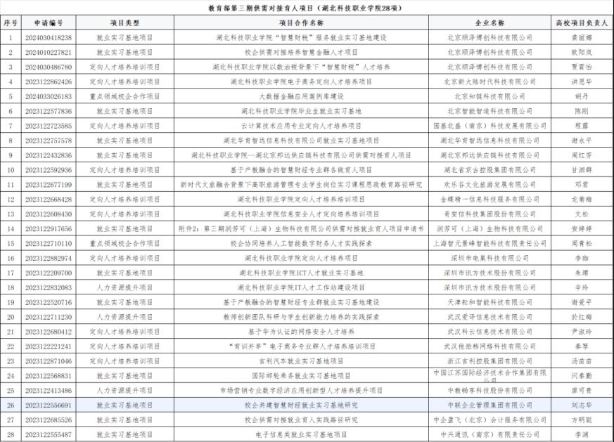 本网讯(通讯员 汤苗苗 文/图)6月14日,教育部高校学生司发布《关于公布教育部第三期供需对接就业育人项目立项名单的通知》,华体网页版_华体(中国)28项就业育人项目获教育部批准立项。立项数量位居全省高职前三。