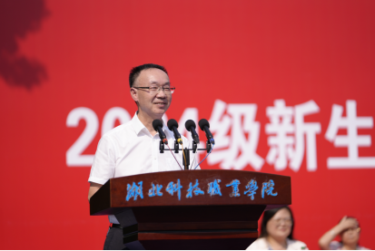 经济贸易学院2024 级大数据与会计专业张欣雨同学作为新生代表发言。她呼吁同学们珍惜时光,积极学习,立志成为一名有道德、有底线,勤奋好学、追求卓越,脚踏实地、全力以赴的湖科好青年。