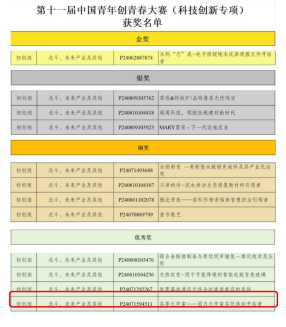第十一届中国青年创青春大赛(科技创新专项)初创组获奖名单