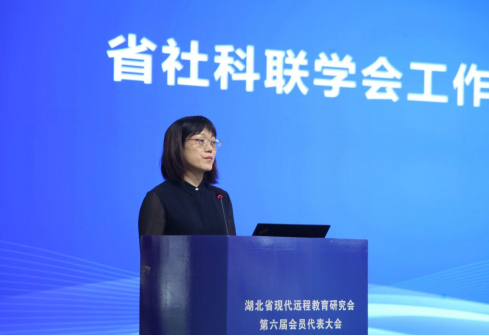 省社科联学会工作部祝金华主任在讲话中表达了对湖北省现代远程教育研究会的认可和期待,也对湖北省现代远程教育研究会的发展提出了宝贵的建议。