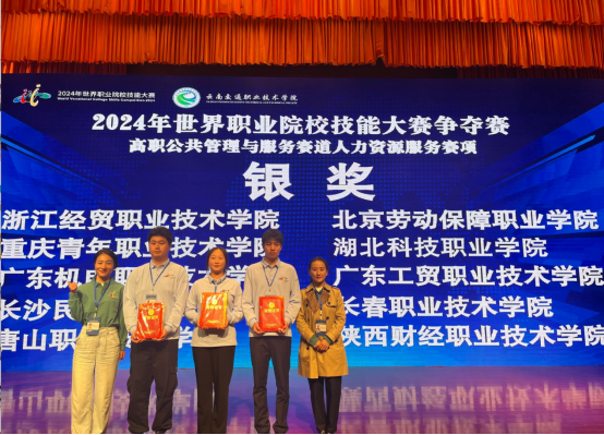 本网讯(通讯员 农珑 杨晶/文 杨晶 汪子琪/图)10月25日至27日, 2024年世界职业院校技能大赛争夺赛公共管理与服务赛道“人力资源服务”赛项在云南交通职业技术学院举办。来自全国30个省、自治区、直辖市的58支队伍219名选手参加比赛,经过两天的激烈角逐,华体网页版_华体(中国)工商管理学院教师杨晶、张姝指导的人力资源管理专业的学生团队孙彬彬、黄海源、李靖凭借出色的表现荣获银奖。