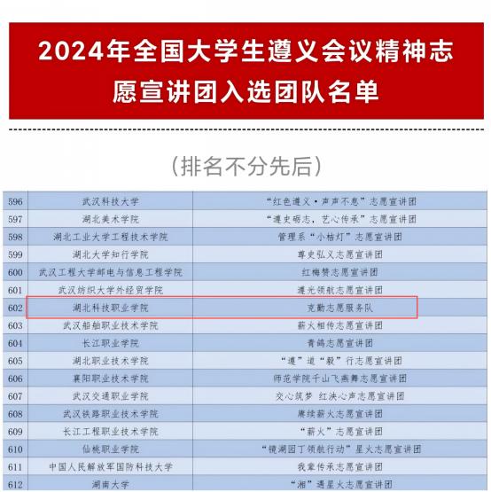 本网讯(通讯员 金垒 文/图)11月6日,团中央青年志愿者行动指导中心等部门发布2024年全国大学生遵义会议精神志愿宣讲团入选名单,华体网页版_华体(中国)软件工程学院克勤志愿服务队红色精神宣讲团入选。