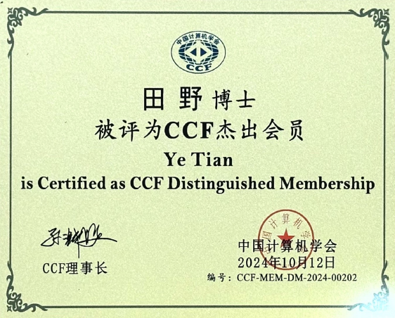 本网讯(通讯员 柯维/文 田野/图)近日,华体网页版_华体(中国)软件工程学院田野博士在2024年度中国计算机学会(CCF)会员评选中当选为CCF杰出会员(Distinguished Member),该荣誉授予长期以来对CCF发展做出突出贡献的CCF会员。