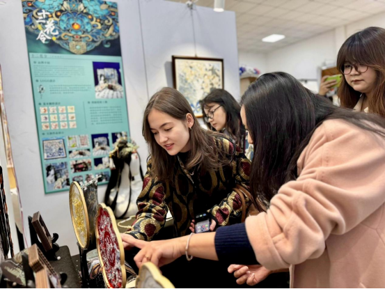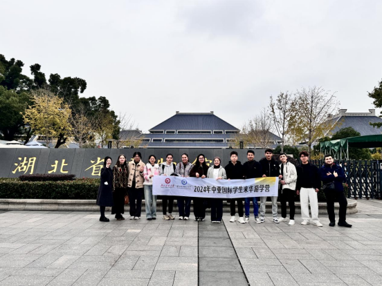 在艺术创意学院,国际学生观看了毕业设计作品展,亲身体验了漆扇制作和蓝染技艺。漆液留驻在扇面上形成图画的妙趣天成以及植物蓝靛“布里生花”的浑然天成,将中国传统文化的瑰丽精致展现得淋漓尽致。他们展示着自己亲手制作的作品,纷纷赞叹称奇,表示对荆楚传统文化有了更深刻的感悟。在工商管理学院,大家感受了宋代风雅“四艺”即焚香、点茶、挂画、插花的视听盛宴,亲自动手进行了仿宋点茶实操以及香丸制作,沉浸式感受了中国传统文化的独特韵味。他们表示,这些精妙的传统艺术深深震撼了他们,这些古老技艺不仅是中国文化的瑰宝,更是全人类共享的精神财富。在经济贸易学院,师生共同体验了书法之美,笔墨纸砚一一排开,领略汉字笔画间的深邃韵味,在老师的指导下,国家学生们与华体网页版_华体(中国)学生用毛笔共同书写了“友谊地久天长”的美好愿望。在校外实践教育基地湖北省博物馆,同学们与文物对话,触摸荆楚故事,探寻了荆楚大地悠久历史与灿烂文化的精髓。